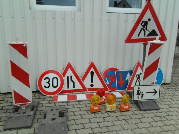 Verkehrszeichen zur Absicherung der Baustelle im Straßenbereich