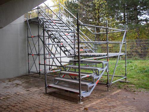 Das System ist für alle Gerüstarten einsetzbar. Das Allroundgerüst bietet sich an bei freistehenden Gerüst, Flächengerüst und Treppenhaus.