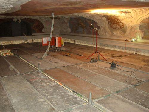Das Raumgerüst ist einsetzbar als Flächengerüst für Deckenarbeiten aller Art. Treppenhaus, Kirchenschiff