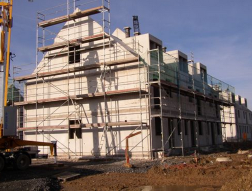 Schrägeinsatz für Ziegeltransport oder sonstigem Material bei Dacharbeiten. Der Bauaufzug wird senkrecht am Gerüst oder Hauswand montiert. Ihre Arbeiten werden hiermit erleichtert, wenn es nach oben geht.